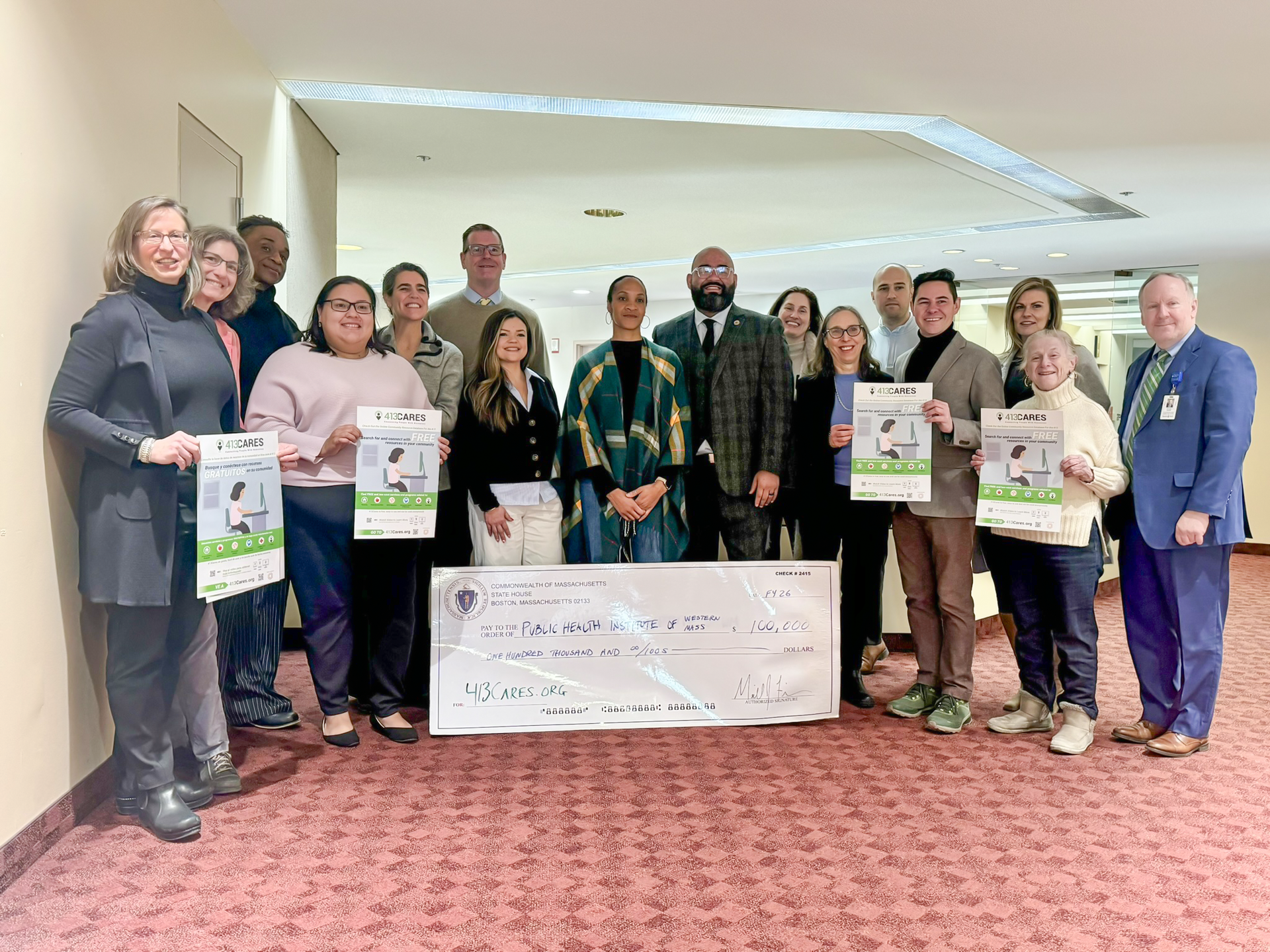 On February 9, 2026, the Public Health Institute of Western Massachusetts convened partners and legislators to celebrate the FY26 earmark for 413Cares.org and to share updates on major regional initiatives. PHIWM extends deep appreciation to Representative Michael Finn, Senator Adam Gomez, and the entire Western Massachusetts legislative delegation for their continued partnership and support for 413Cares.org , which remains a critical tool for connecting Western MA residents to help when they need it most. 413Cares.org saw major growth in 2025, with searches doubling and the number of users increasing more than fourfold. Check out photos from the gathering below!
